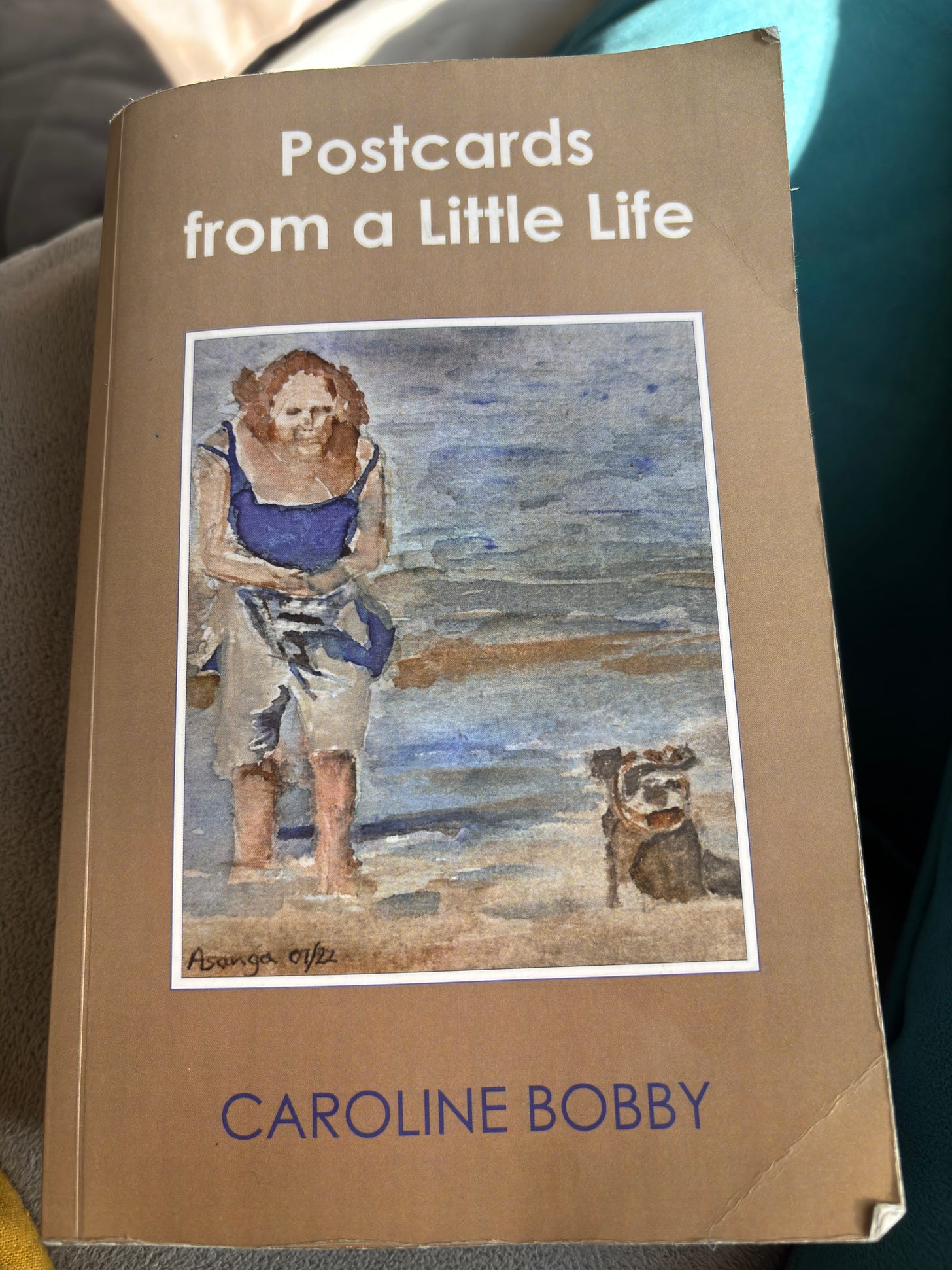 This is my somewhat bedraggled, first bound proof copy of Postcards From a Little Life.